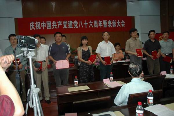 會場坐無缺席 受表彰先進領獎 新黨員莊嚴宣誓 受公司黨委書記、董事長楊揚委托,孫明如副書記總結(jié)講話