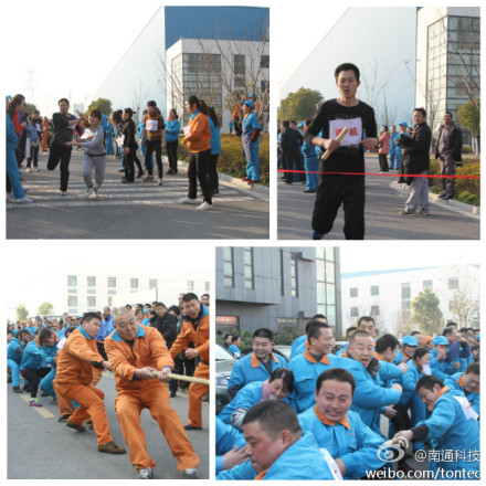 為進(jìn)一步加強(qiáng)南通科技各個黨支部的溝通和聯(lián)系,增強(qiáng)職工團(tuán)隊(duì)的凝聚力和向心力,2013年12月31日下午1:30,該公司開展了“迎新年文體聯(lián)誼活動”。 當(dāng)天下午,分別舉辦了拔河、環(huán)廠健身接力跑兩項(xiàng)比賽。最終通機(jī)支部以超強(qiáng)的實(shí)力斬獲兩項(xiàng)比賽的冠軍,工廠二支部勇奪兩項(xiàng)比賽亞軍,工廠一和綜合一支部分別獲得拔河、環(huán)廠健身接力跑的第三名。