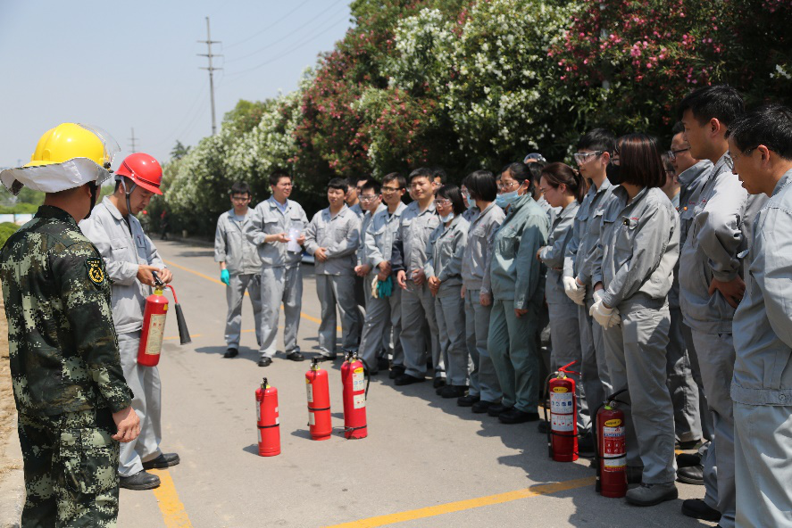 5月22日下午,南通江山農(nóng)藥化工股份有限公司直屬團(tuán)支部在公司消防隊(duì)舉辦了消防技能比武活動(dòng),此次活動(dòng)包括手持滅火器滅火、消防水帶使用、消防服及空呼器的穿戴。來自公司研究院、業(yè)務(wù)發(fā)展部、營銷中心、綜合管理部等6個(gè)部門,共計(jì)28名青年員工參加了活動(dòng)?;顒?dòng)開展之前,28名參賽選手通過抽簽方式分成兩組。接著公司消防隊(duì)長介紹了滅火器的種類、滅火器的使用方法以及比賽規(guī)則。