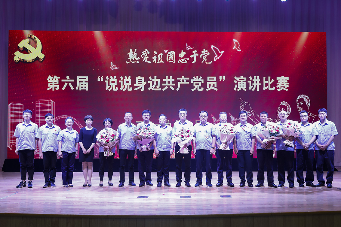 來自各基層黨支部的施天鳳、王強(qiáng)等7名演講者聲請(qǐng)并茂地為大家講述了身邊優(yōu)秀黨員的先進(jìn)事跡,贏得了現(xiàn)場無數(shù)喝彩。 演講比賽結(jié)束時(shí),7位演講事跡主人公上臺(tái)與大家見面,公司領(lǐng)導(dǎo)為他們獻(xiàn)上了最美麗的鮮花,并現(xiàn)場與遠(yuǎn)在非洲工作的演講事跡主人公李紅飛進(jìn)行了視頻連線,送去了關(guān)心和問候,全體參會(huì)人員為他們送去了最熱烈的掌聲。