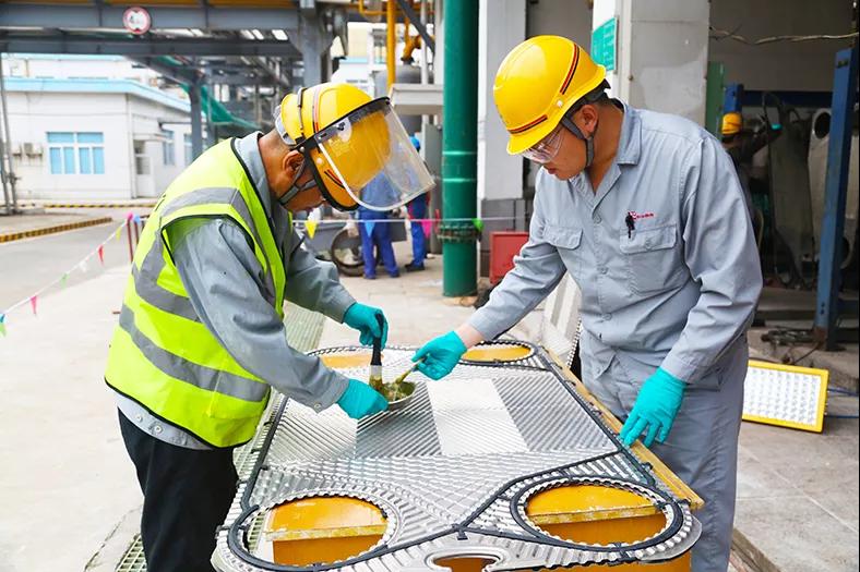 一遍遍查驗檢修作業(yè)人員是否已培訓(xùn)到位,千叮嚀萬囑咐注意安全,杜絕違章行為。業(yè)精于勤疏于嬉,行成于思毀于隨,各事業(yè)部參檢員工齊心協(xié)力,嚴謹細致地檢驗設(shè)備、比對溶劑,精益求精把好檢修質(zhì)量關(guān),嚴格按照驗收標準執(zhí)行。檢修現(xiàn)場,他們忙碌的身影,無處不在。為了一道焊縫,為了一根電線,為了一塊墊片,他們常常一蹲就是半天,一站就是一天。