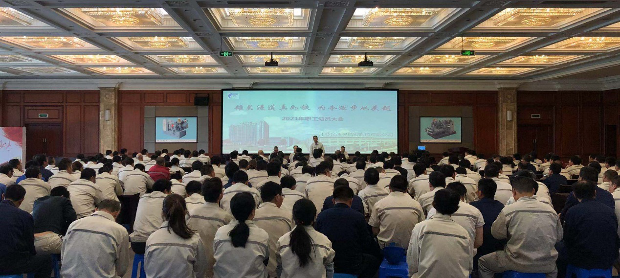 今年度生產(chǎn)任務(wù)異常繁重,車間面臨的產(chǎn)能壓力大,為鼓舞員工干勁斗志,立足崗位勇于攻堅(jiān)克難,積極推進(jìn)生產(chǎn)作業(yè)的落實(shí),保質(zhì)保量交付產(chǎn)品,江蘇金通靈精密制造有限公司于5月8日下午在金通靈科技大樓附樓3樓禮堂召開了以“雄關(guān)漫道真如鐵,而今邁步從頭越”為主題的員工大會,由總經(jīng)理來逢政主持,公司全體人員參加了本次大會。 大會上總助徐曉東、生產(chǎn)副總李賢坤、工藝副總韓棟先后就質(zhì)量、生產(chǎn)、技術(shù)工藝方面的工作進(jìn)行全面總結(jié),并根據(jù)實(shí)際情對員工關(guān)注體系、工時(shí)調(diào)整等問題答疑解惑,同時(shí)也對后期各項(xiàng)工作提出要求。